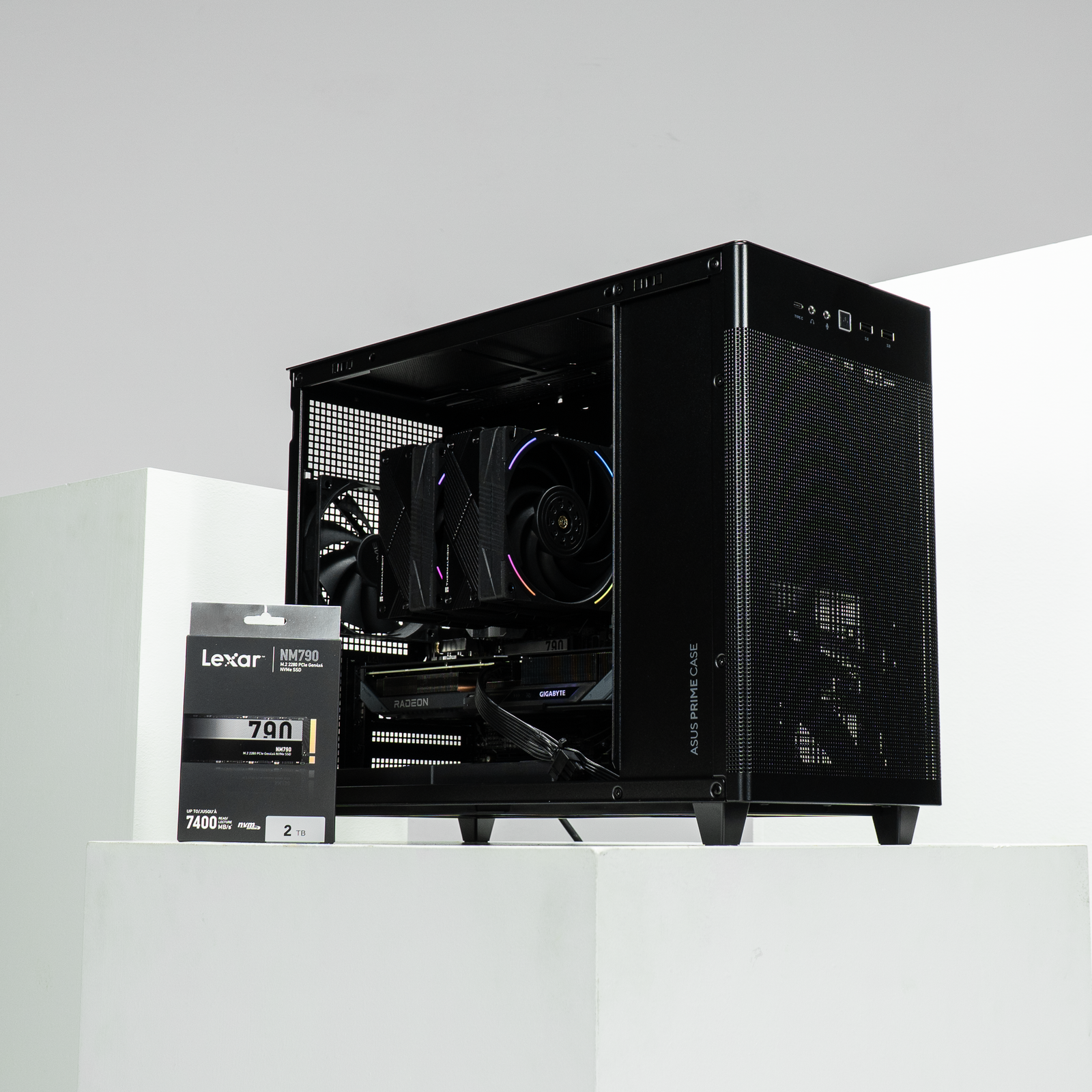 The Compact MATX is about as big as a home air purifier - which fits just right for most setups. With this said, you can still fit up to a 240mm AIO cooler and a 5070 Ti graphics card!