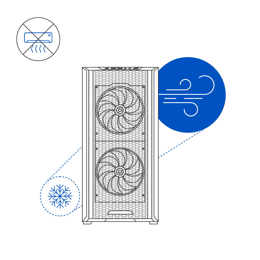 Leave your aircon off! Despite being smaller than a Standard ATX (standard-size) PC build, there is sufficient free space for optimal airflow.